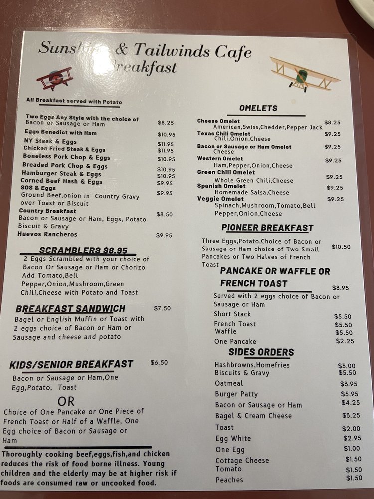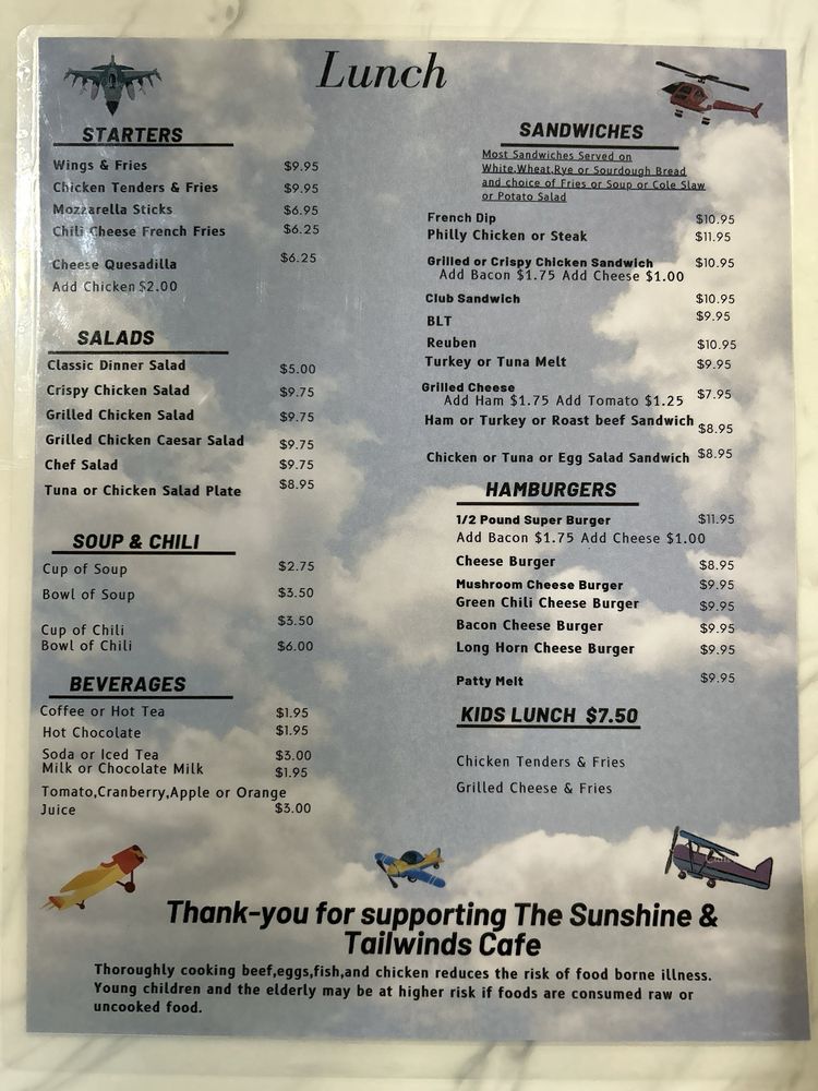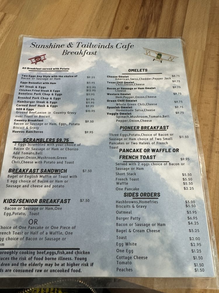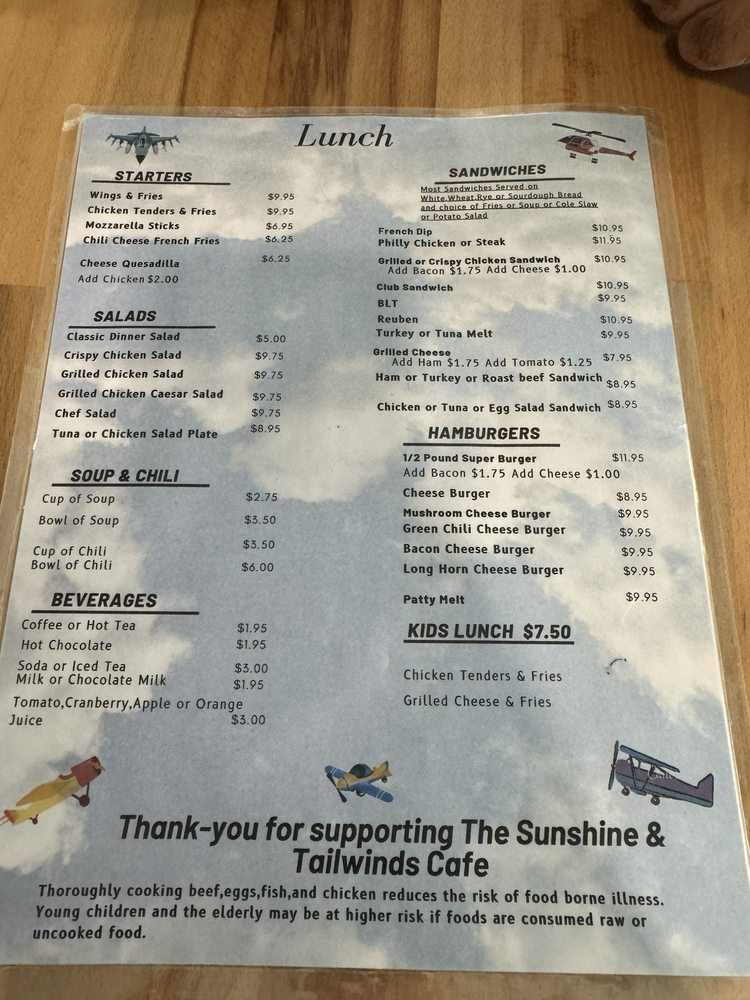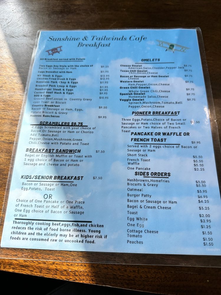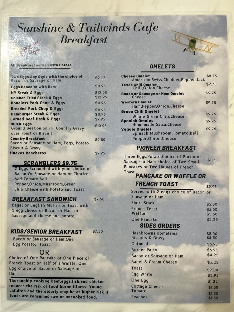 Sunshine & Tailwinds Cafe Menu (2025 Update)